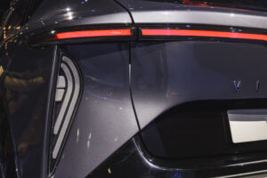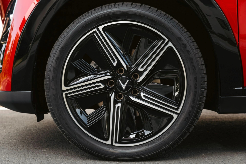 • Thiết kế: VF7 nổi bật với dải đèn LED hình cánh chim ở cả đầu và đuôi xe – đặc trưng của VinFast. Mui xe vuốt coupe thể thao, kết hợp cùng la-zăng hợp kim 19 inch (Eco) hoặc 20 inch (Plus).